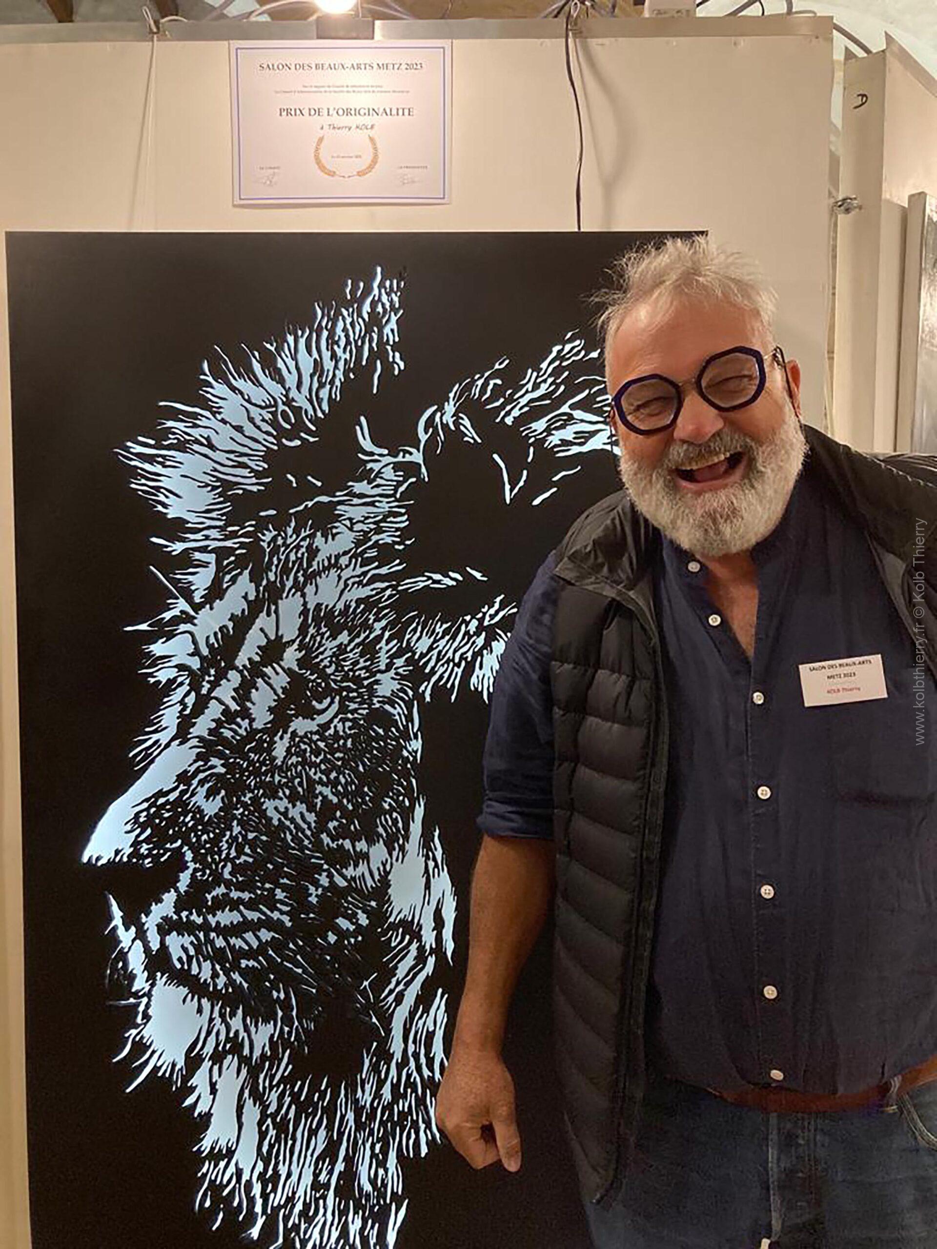 En direct du Salon des Beaux-Arts de Metz 2023, Thierry recoit le Prix de l’Originalité.