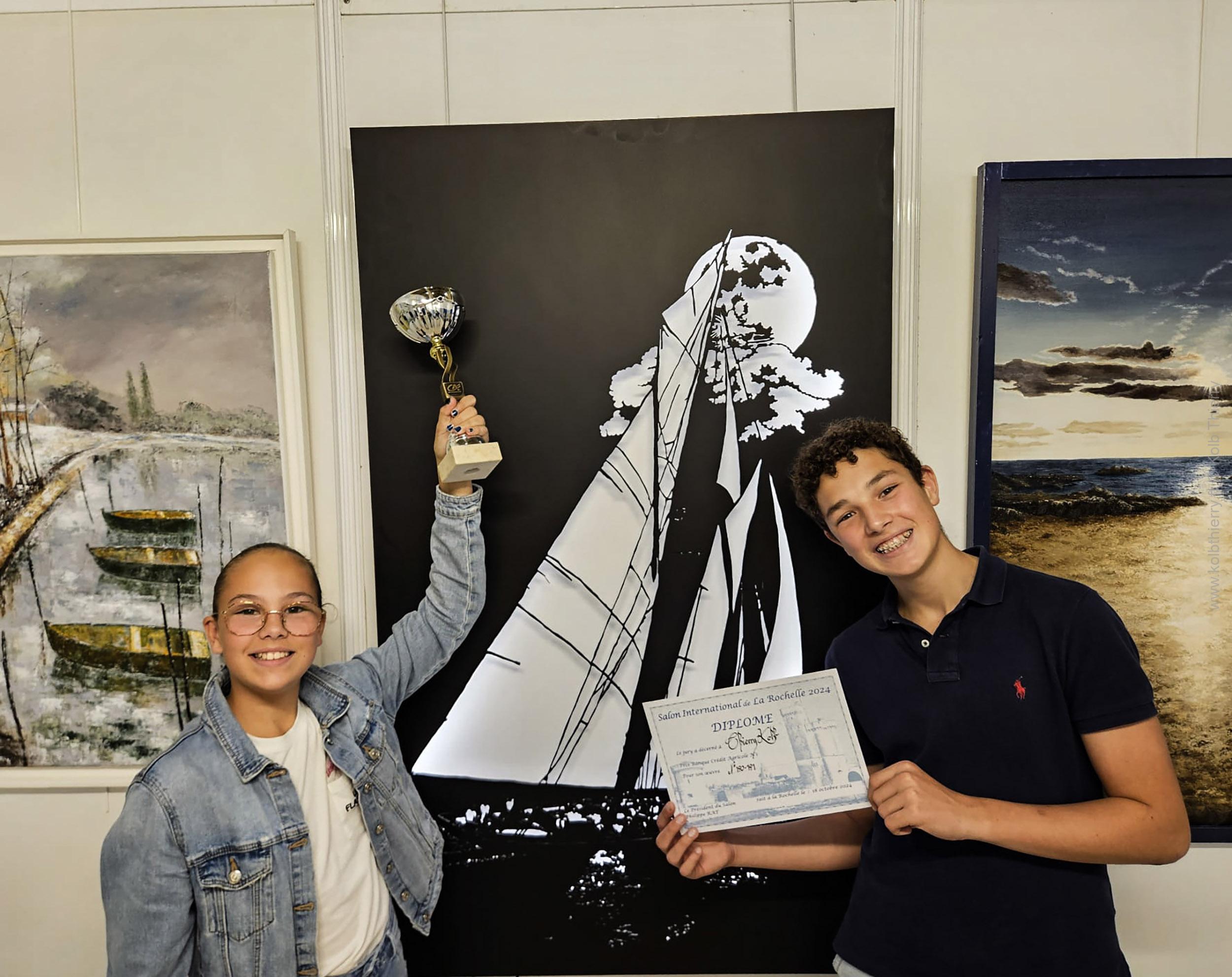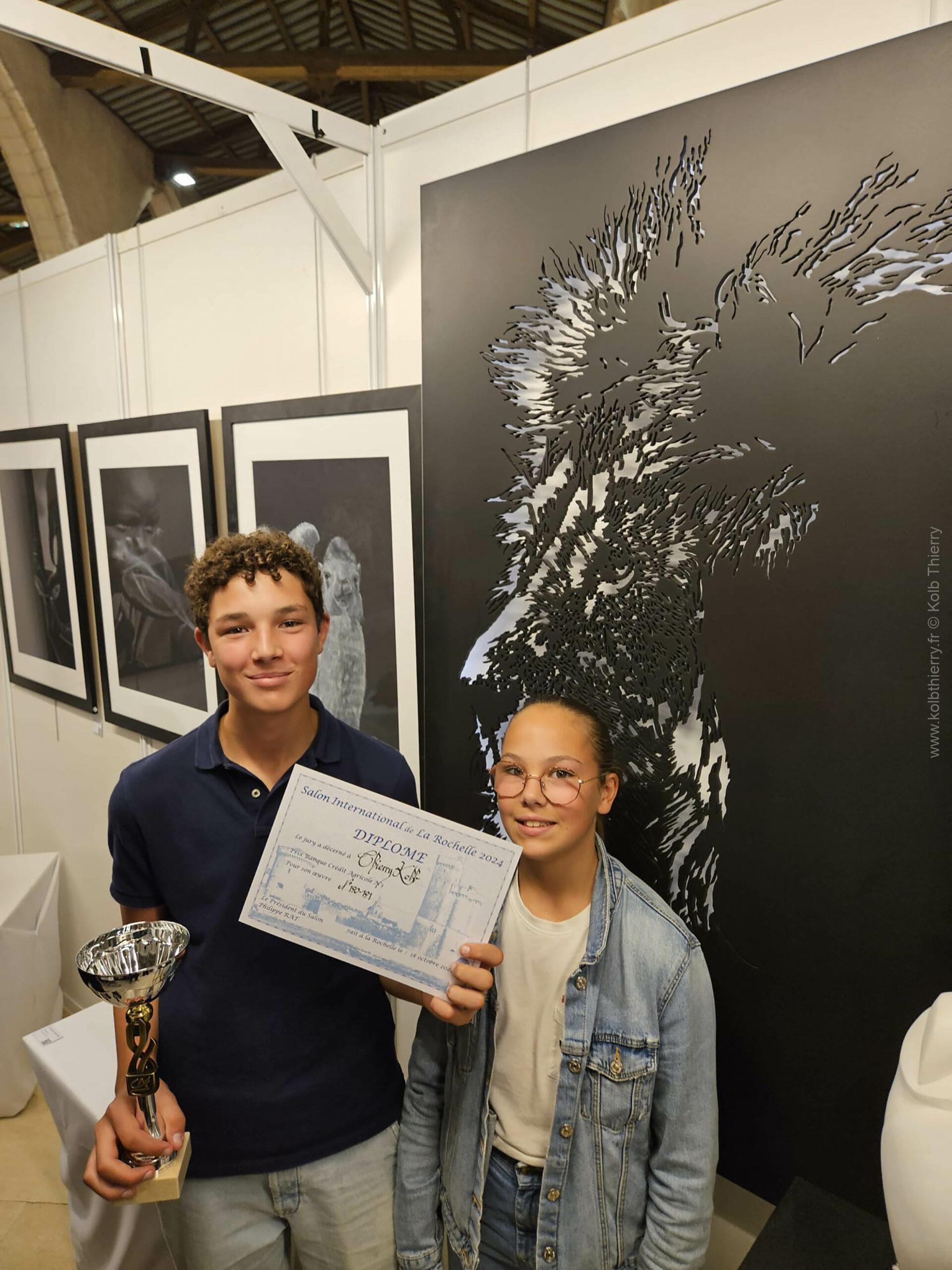 Hier soir s’est déroulé le vernissage, et j’était hautement représenté par Jazon, Lou mes petits-enfants et Jérémie, leur papa. J’ai eu la joie de recevoir un prix que Jazonet Lou sont allés chercher pour moi.