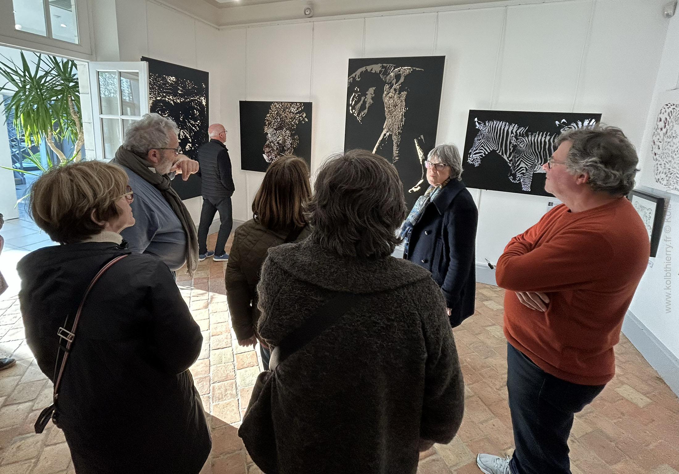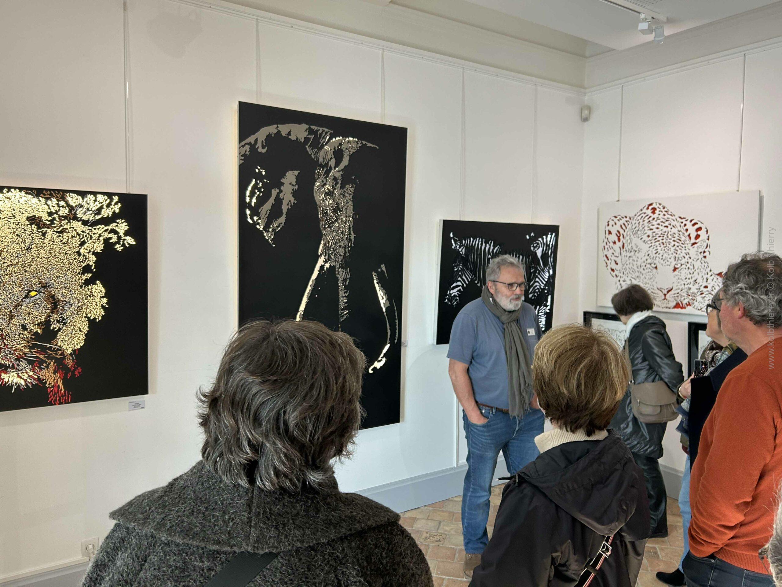 J’y expose Craig, célèbre Tusker d’Amboseli au Kenya, Kwanza, tête d’un splendide lion du Masai Mara au Kenya, Quarta, 1ère gorille née en captivité dans un zoo européen, les 3 zèbres, et le léopard aux aguets.