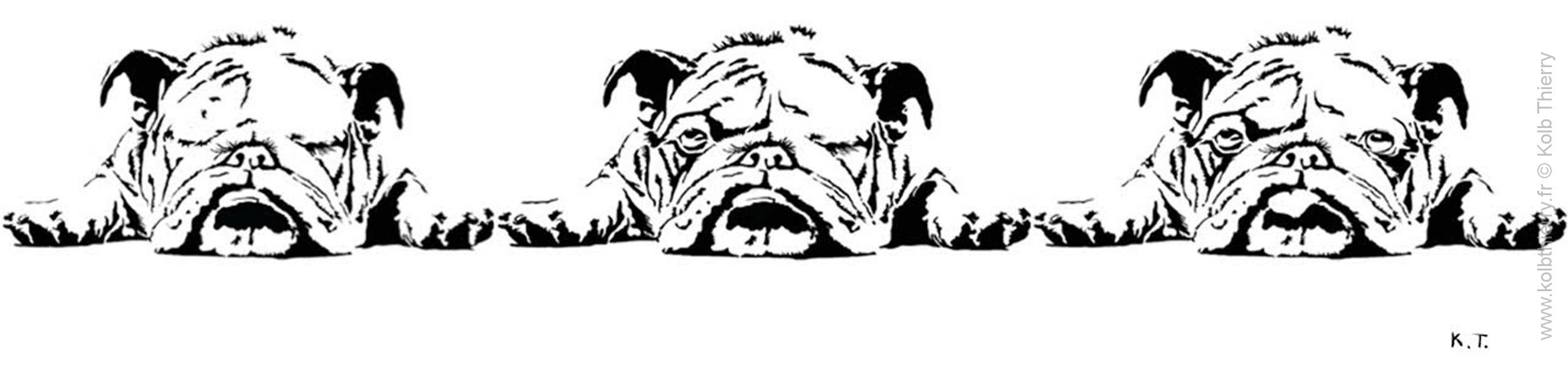 Joyeux jeu de 3 têtes de Bouledogues.