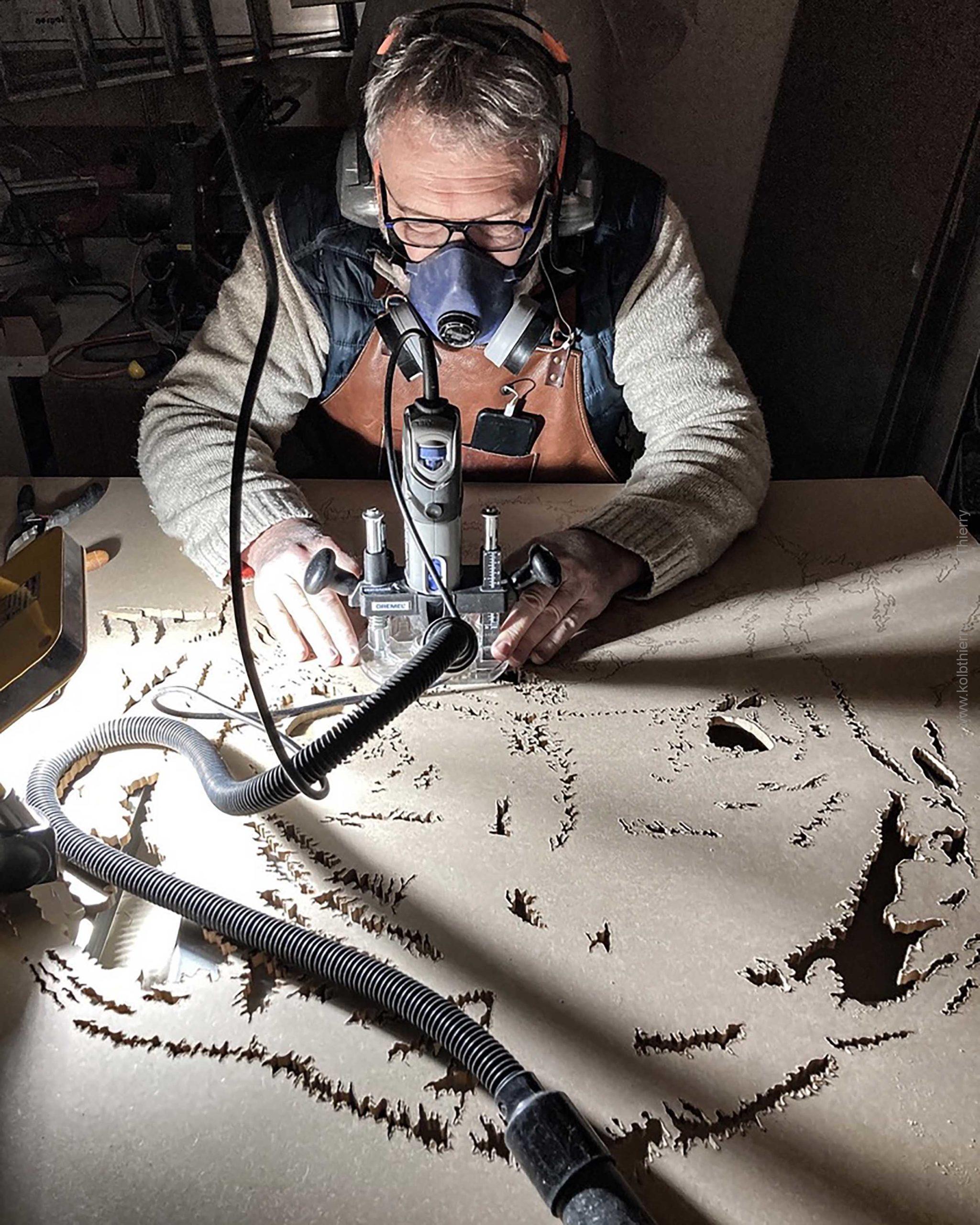 Cette sculpture est réalisée sur panneau de bois MDF découpé et ses dimensions sont de L122xH94.
